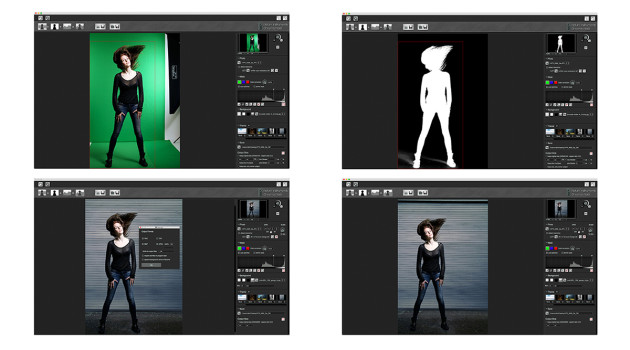 Wurden einmal in Chroma Mask die Einstellungen auf den verwendeten farbigen Hintergrund abgestimmt, so muss der Fotograf nur den Auslöser drücken, um die fertige Komposition zu begutachten. Dieser Workflow erleichtert das Einrichten und Abstimmen der Beleuchtung auf das gewählte Hintergrundmotiv erheblich. Das fertige Ergebnis lässt sich wahlweise auch auf einem zweiten Monitor oder Fernseher anzeigen, wodurch u.a. die Abstimmung des Endergebnisses mit dem Kunden erleichtert wird.