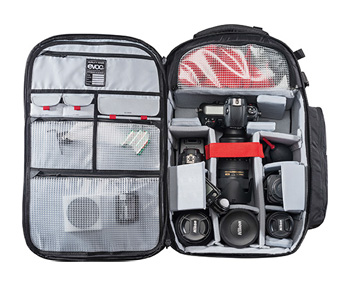 Das Kamerafach ist gepolstert und durch Trennwände individuell konfigurierbar. Der Rucksack selbst ist über abschließbare T-Reißverschlusszüge schnell und einfach vom Rücken her zu öffnen. Der Zugang am Rücken bietet nicht nur Sicherheit vor Diebstahl, sondern garantiert, dass nur die Vorderseite beim Absetzen auf den Boden schmutzig und nass wird. Das Rückenteil und der Rücken bleiben sauber und trocken. Für den Wintereinsatz lassen sich Ski, Snowboard oder Schneeschuhe ebenso am Rucksack befestigen wie Stativ, Stöcke und Eispickel. Kamerazubehör, wie Speicherkarten und Akkus, finden in transparenten Kleinteilfächern Platz. Das Deckelfach wurde extra weich gefüttert. Die Seitentasche fasst Trinksysteme bis zu drei Litern. Zudem befindet sich auf der Vorderseite ein 17-Zoll Notebook-Fach. Des Weiteren hat der CP 35l ein eigenes, leicht zugängliches Fach für die Lawinenausrüstung (Schaufel & Sonde). Der aufgedruckte Notfallplan erläutert die ersten Schritte nach einer Verschüttung und dient im Notfall als Hilfestellung. Auch eine wasserdichte Regenhülle ist inklusive. Das neue Neutralite Carrying System garantiert zudem eine weitgehend bewegungsneutrale Lastverteilung. Über segmentierte und strategisch positionierte Polster überträgt eine Stabilisierungsstrebe das Gewicht auf den breiten, gepolsterten Hüftgurt mit der kleinen Tasche für Kleinteile und damit auf den Körperschwerpunkt. Die breiten, ergonomischen und gut gepolsterten Schultergurte sowie der Brustgurt mit der integrierten Signalpfeife halten den Rucksack in Position. Das Air Circulation System sorgt für Luftzirkulation im gesamten Rückenbereich.