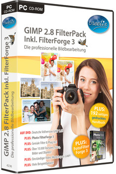 Zahlreiche fertige Filter, vom Weichzeichner bis zum Rote-Augen-Entferner, sind in Gimp 2.8 bereits enthalten. Auf der CD finden sich zusätzliche Plug-Ins für spielerische Effekte. Als eigenständige Software lässt Photo Filter Forge 3 ein Bild altern oder verwandelt es in eine Comic-Zeichnung. Mit über 10.000 Texturen, Fotos, Bildern und Objekten bietet das FilterPack zudem Material für Grafikarbeiten. Systemvoraussetzungen: IBM-kompatibler PC Pentium ab 1 GHz; Windows 8.1, 8, 7, Vista, XP (jeweils 32- und 64-Bit), CD-/DVD-ROM-Laufwerk. GIMP 2.8 FilterPack inkl. FilterForge 3, gibt es bei bhv Publishing für knapp 20 Euro.