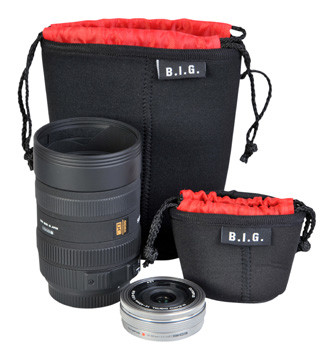 In den gepolsterten Neopren-Beuteln von B.I.G. finden Objektive oder Kameras Schutz vor Kratzern und Schmutz.