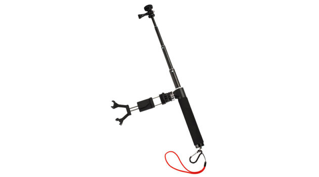 Wie bei einem normalen Selfie-Stativ wird die Kamera an einer Teleskopstange befestigt, die beim neuen Hama-Modell „Selfie 100 Panorama“ von 24 auf 100 Zentimeter ausgezogen werden kann. Oberhalb des Griffs sitzt eine zusätzliche Halterung für das Smartphone, das via Bluetooth mit der Kamera verbunden wird. Es fungiert so als Kontrollmonitor, erspart manchen missglückten Versuch und natürlich auch überflüssiges Nachbearbeiten.