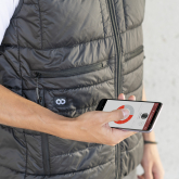 Das integrierte Heizsystem sorgt nicht nur für warme Hände in den Seitentaschen, sondern auch im Nieren-, Rücken- und Bauchbereich. Die COOPH Photo Vest kann zwar mit jedem wieder aufladbaren 5V Akku betrieben werden, der über eine USB-Schnittstelle verfügt, die integrierte THERM-IC 5200 mAh Batterie hält allerdings bis zu fünf Stunden warm! Um ein Smartphone zur Temperaturkontrolle zu verwenden, ist die Photo Vest mit einem THERM-IC Bluetooth Adapter ausgestattet.