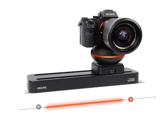 Reibungslose Kamerafahrten ermöglicht der neue motorisierte Capsule Slider, der in drei verschiedenen Schienenlängen von 30, 50 oder 70 cm erhältlich ist. Durch die mit der App steuerbare Motorbewegung gelingen Kamerafahrten ohne Verwacklungen. Zusammen mit der Capsule360 lassen sich horizontale Schwenks und Fahrten per App kombinieren und professionelle Kamera-Moves ermöglichen, die mit herkömmlicher Technik zeitaufwendiger wären. Die App koppelt mehrere MIOPS-Geräte und steuert alle synchron.
