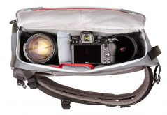 Im Inneren sorgen variable Teiler für die optimale Konfiguration für große spiegellose Systemkameras oder DSLR ohne Batteriegriff. Netztaschen auf der Innenseite des Deckels dienen zum Verstauen von kleinem Zubehör wie Akkus, Speicherkarten und Filtern. Den PhotoCross 13 gibt es in zwei Farbgebungen: Orange Ember und Carbon Grey.