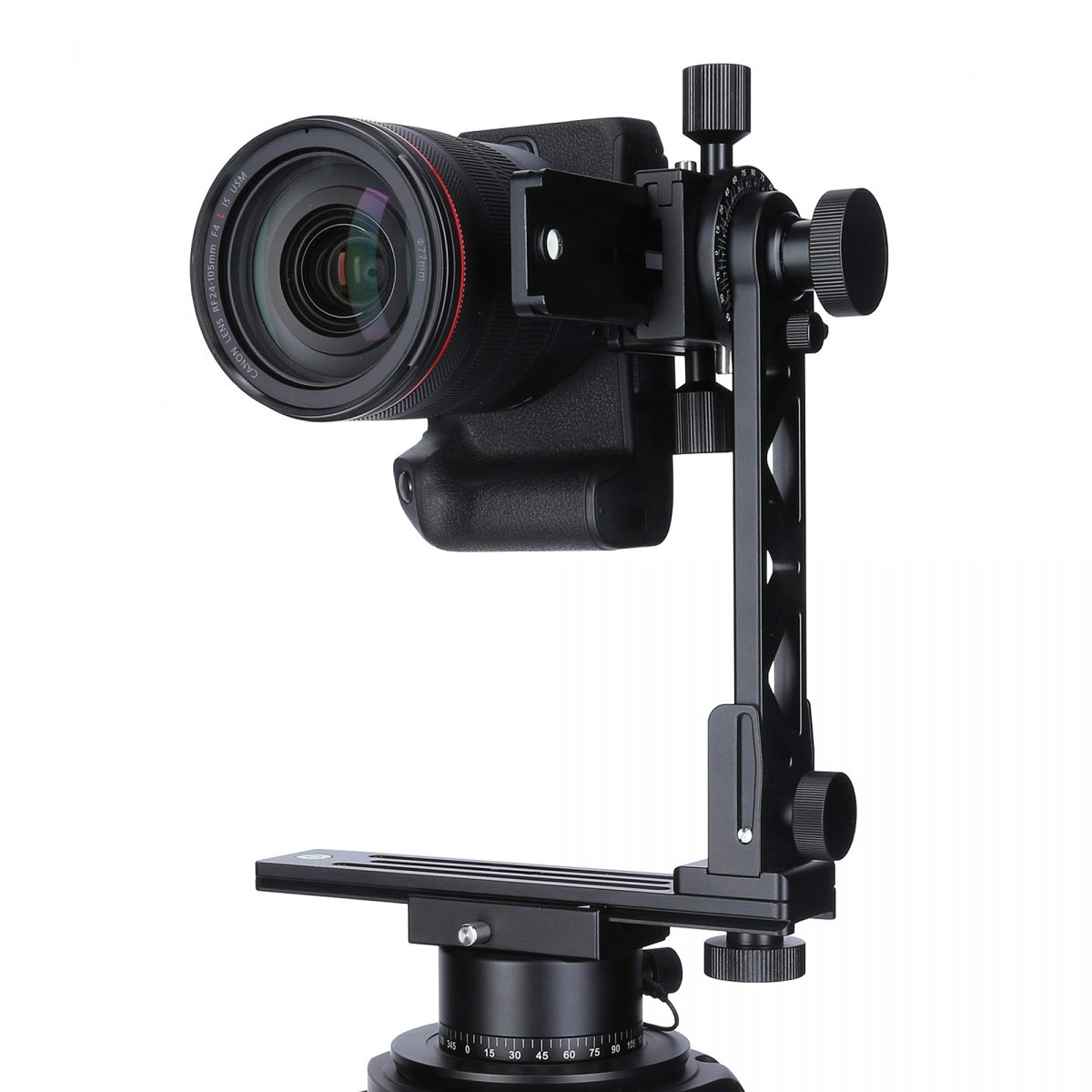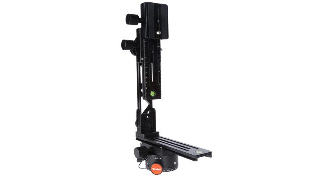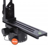 Der Panoramakopf lässt sich horizontal um die zentrale Achse drehen. Die Mitte des Panoramakopfes ist jetzt für das leichtere Einstellen des Nodalpunktes mit einem Kreuz gekennzeichnet, zwei integrierte Wasserwaagen auf beiden Rotationsachsen erleichtern die Justierung. Kameras mit bis zu 3 kg Gewicht können auf dem Aluminium-Panoramakopf fixiert werden. Über Skalen in Zentimeter und Inch auf den Gleitschienen sind die Rotationsschritte einstellbar.