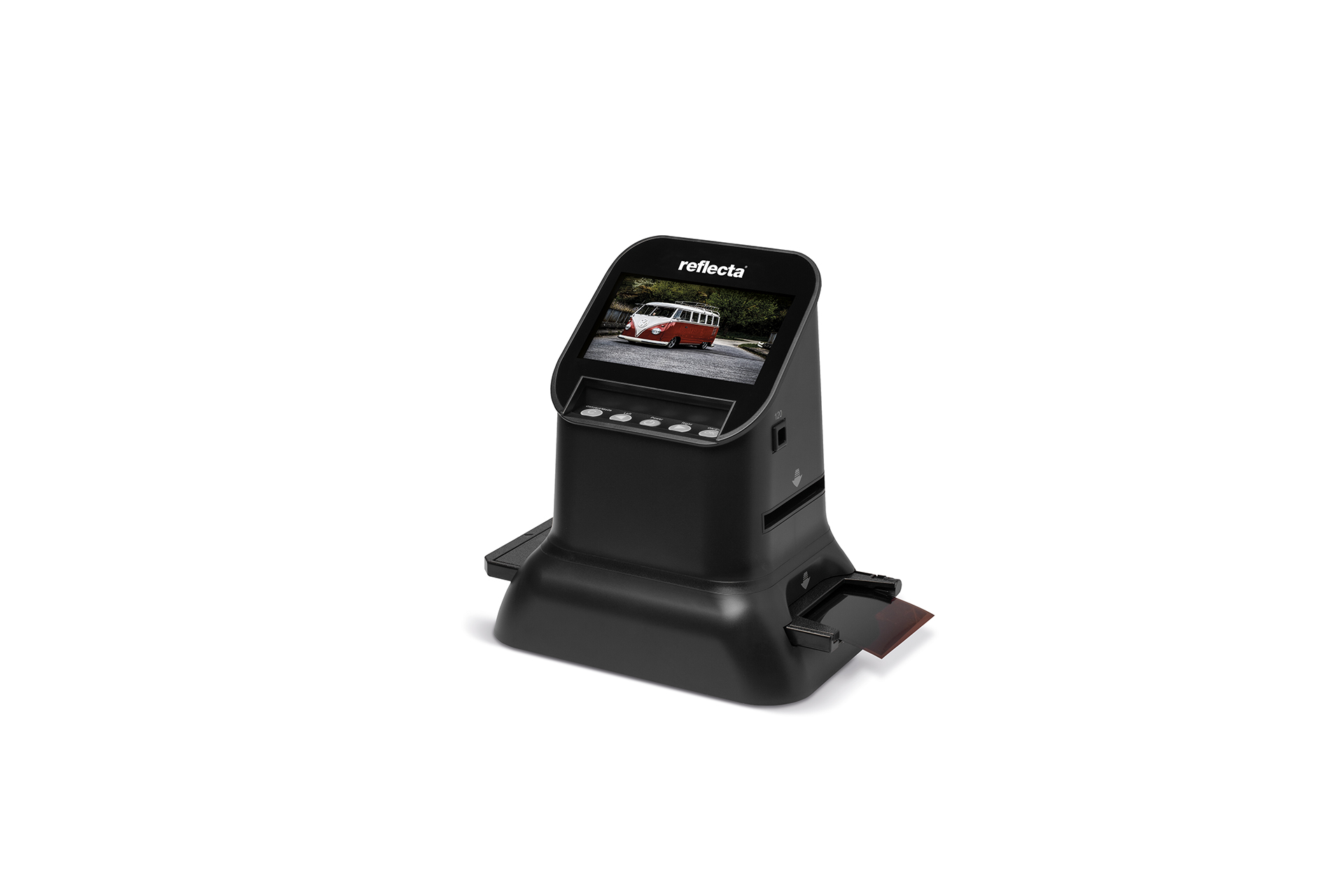 Der Scanbereich des neuen Filmscanners entspricht den Abmessungen des traditionellen Kleinbildformats, also 24 x 36 mm. Die Scan-Auflösung liegt bei bis zu 3600 DPI (24 MP), die Farbtiefe bei bis zu 48 Bit. Dank seiner kompakten Maße von nur 232 x 157 x 128 mm (LxBxH) sowie dem moderaten Gewicht von 1,9 kg passt der reflecta PF 135 in nahezu jede Arbeitsumgebung. Die Stromversorgung erfolgt über den mitgelieferten 12V-Netzadapter.