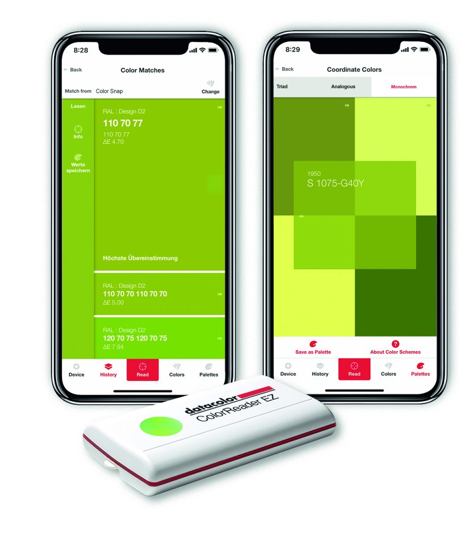 Das mit einem empfohlenen Verkaufspreis von 69 Euro erschwingliche Gerät wird per Bluetooth mit der ColorReader Smartphone-App verbunden, die sowohl für iPhone als auch für Android verfügbar ist.