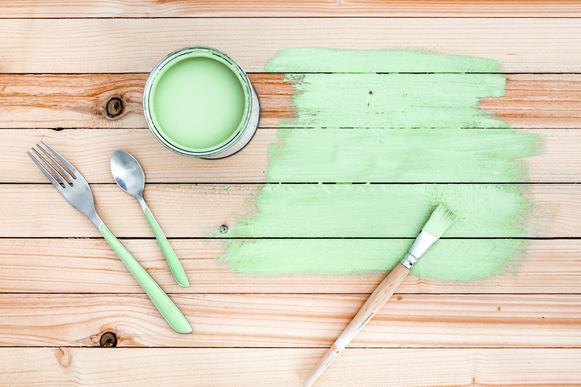Für eines ihrer Projekte sollte Vera Wohlleben verschiedene Bestecksets in stimmungsvollen Gebrauchs-Situationen fotografieren, also sogenannte Mood-Fotos erstellen. „Das Besondere an den Bestecksets sind die Griffe in geschmackvollen, von der Natur inspirierten Farben. Diese Farben wollte ich im Fotoset aufgreifen.“ Es ging konkret darum, einem Holz-Untergrund genau den salbeigrünen Ton des Bestecks zu geben. Ein kleineres Tablett sollte das matte Braun einer weiteren Besteckvariante bekommen.