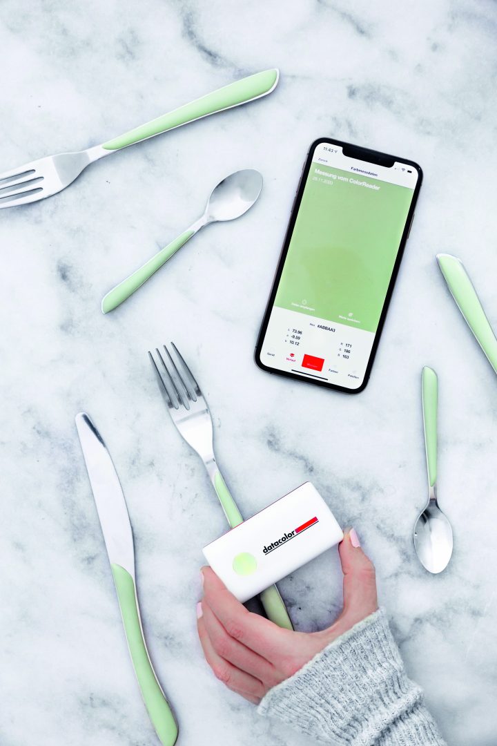 Vom Besteck zum farblich passenden Fotoset – der Datacolor ColorReader macht es möglich, Farben in Fotosets exakt abzustimmen. Die Fotografin Vera Wohlleben setzt den ColorReader für ihre Stillifes ein.