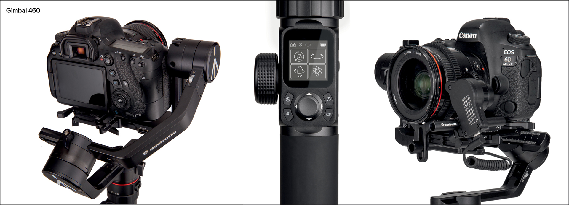 Für Benutzer, die mit größeren und komplexeren Kamerasystemen arbeiten, bietet Manfrotto den Gimbal 460 an, mit dem DSLR- und Cinema Camera-Setups mit einer maximalen Nutzlast von 4,6 kg stabilisiert werden können. Die Gimbal Pro-Version wird komplett mit Follow Focus und einer Fernbedienung geliefert, die ihn in einen vollständig ferngesteuerten Videokopf verwandelt. Die Betriebszeit bei diesem Modell beträgt bis zu 12 Stunden.