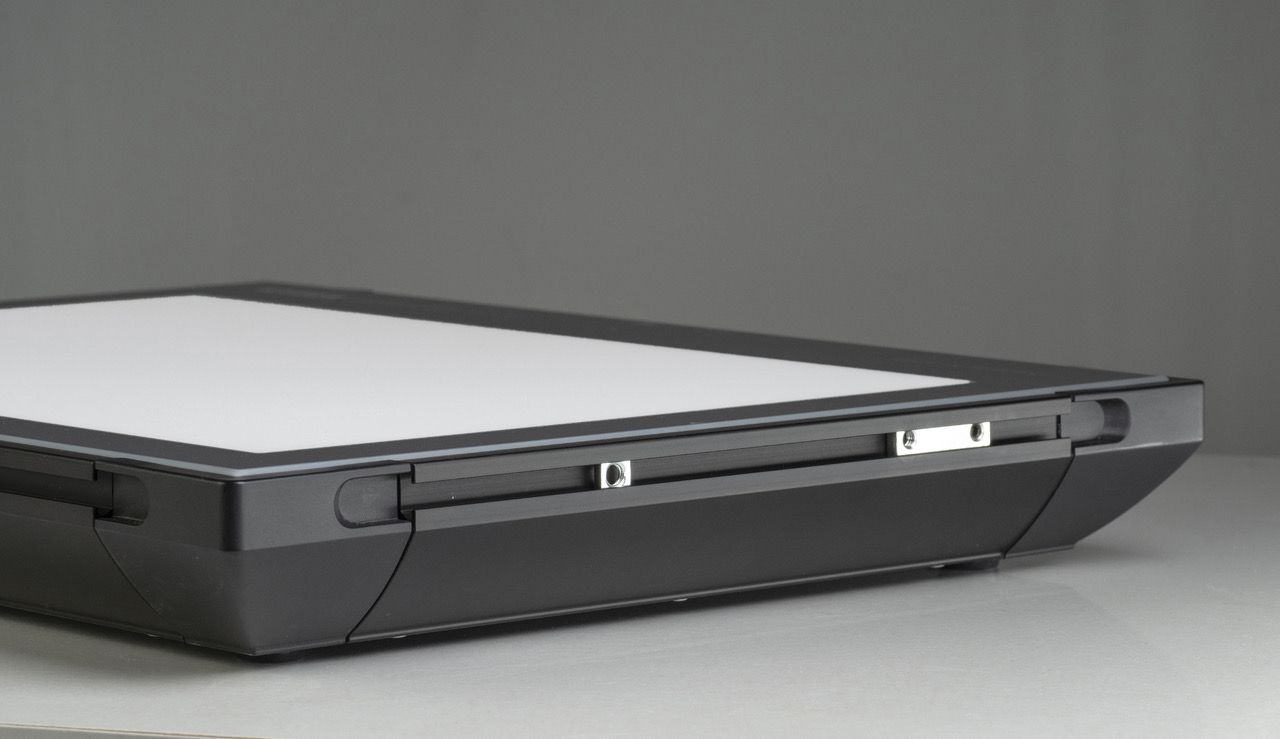 Zur exakten Positionierung der Vorlagen dienen die durchleuchteten cm- und inch-Skalen am Rande der Leuchtflächen. Zusätzlich können die Vorlagen mit zwei mitgelieferten Neodym-Magneten fixiert werden. Weitere Magnete sind als Zubehör erhältlich.