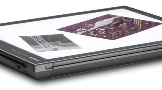 Zur exakten Positionierung der Vorlagen dienen die durchleuchteten cm- und inch-Skalen am Rande der Leuchtflächen. Zusätzlich können die Vorlagen mit zwei mitgelieferten Neodym-Magneten fixiert werden. Weitere Magnete sind als Zubehör erhältlich.