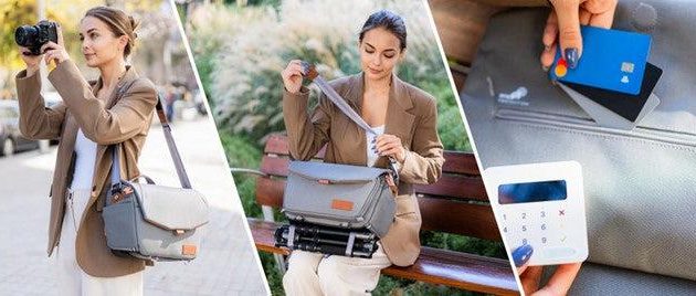 Geliefert werden die neuen Schultertaschen mit einem rutschfesten Neopren-Schultergurt, der drehbar an der Tasche befestigt ist. Eine gepolsterte Rückseite passt die Tasche an den Körper an. Für längere Strecken gibt es außerdem einen abnehmbaren Umhängegurt, der verhindert, dass der Schultergurt unterwegs verrutscht.