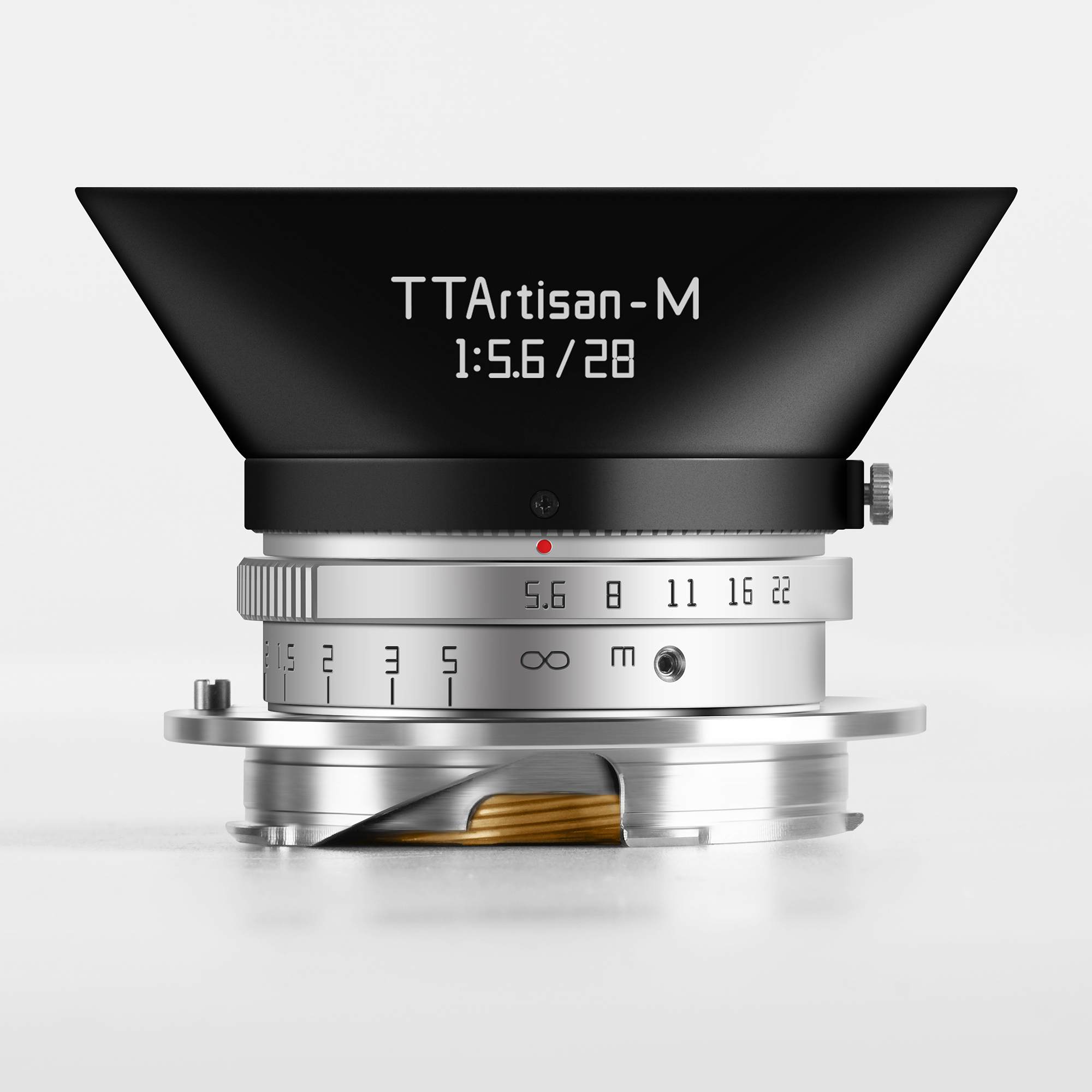 Das optische Design des 28mm besteht aus sieben Elementen, die in vier Gruppen angeordnet sind. Darunter befinden sich zwei Elemente mit hohem Brechungsindex und ein Element mit niedriger Dispersion, die dabei helfen, Aberrationen zu zähmen. Weitere Merkmale sind ein 37-mm-Frontfiltergewinde, ein M-Mount typischer minimaler Fokussierabstand von einem Meter und sechs Blendenlamellen. Das Messing-Gehäuse misst 51 Millimeter im Durchmesser, ist nur 19 Millimeter lang und wiegt 151 Gramm.