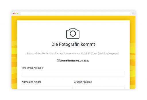 Durch die Vorabanmeldung wird sichergestellt, dass die jeweiligen Kinder fotografiert werden dürfen – und auch die spätere Kontaktaufnahme zu den Eltern für den Verkauf der Bilder ist möglich. Außerdem wird die Planung des eigentlichen Shootings erleichtert. Parallel können auch wie bisher Zugangskarten vom Fotografen ausgedruckt und zum Fototag mitgebracht werden. Auf diese Weise sind auch Schüler und Kinder abgedeckt, die vorab nicht online angemeldet wurden.