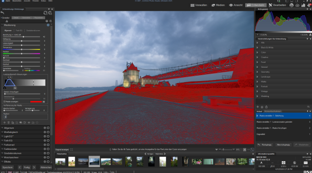 Die neugestaltete Maskierungsgruppe dient als Basis für alle Maskierungswerkzeuge. Die neuen Maskierungsoptionen für den Farb- und Luminanzbereich ermöglichen es, lebhafte Farbtöne und tiefe Schatten im Bild hervorzuheben.
