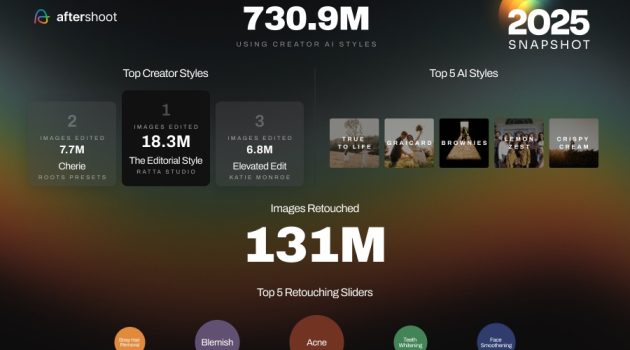 Laut den ausgewerteten Daten wurden im Jahr 2025 über Aftershoot insgesamt 8,8 Milliarden Bilder verarbeitet. Die Zahlen verdeutlichen, dass Automatisierung längst nicht mehr nur als Komfortfunktion betrachtet wird, sondern als Antwort auf ein Produktionsniveau, das manuell kaum noch effizient zu bewältigen ist.