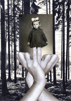 Auch die Porträts von Alexandra Baumgartner (*1973 in Salzburg) sind psychoanalytisch inspiriert. Ihre Fotocollagen sind drastische Interventionen in die Oberfläche des fotogr fotografischen Bildes, bei denen ein latenter Eindruck von Zwang und Gewalt entsteht.