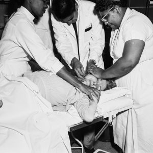 - Published in UK Vogue, June 1945, page 25. Published in US Vogue, June 1945, page 106. Captioned as: Justice amid the ruins.