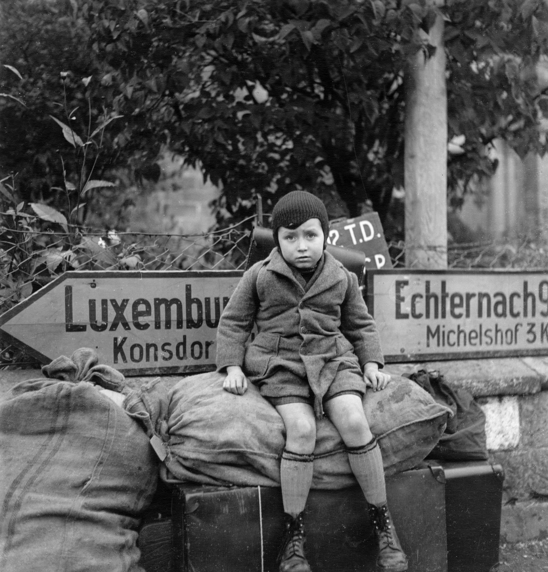 - Small tired boy [Raymond Melchers aged 7] waits at crossroads for transport, lweschtgaass, Bech, Luxembourg 1945 by Lee Miller © Lee Miller Archives England 2021. All Rights Reserved. www.leemiller.co.uk