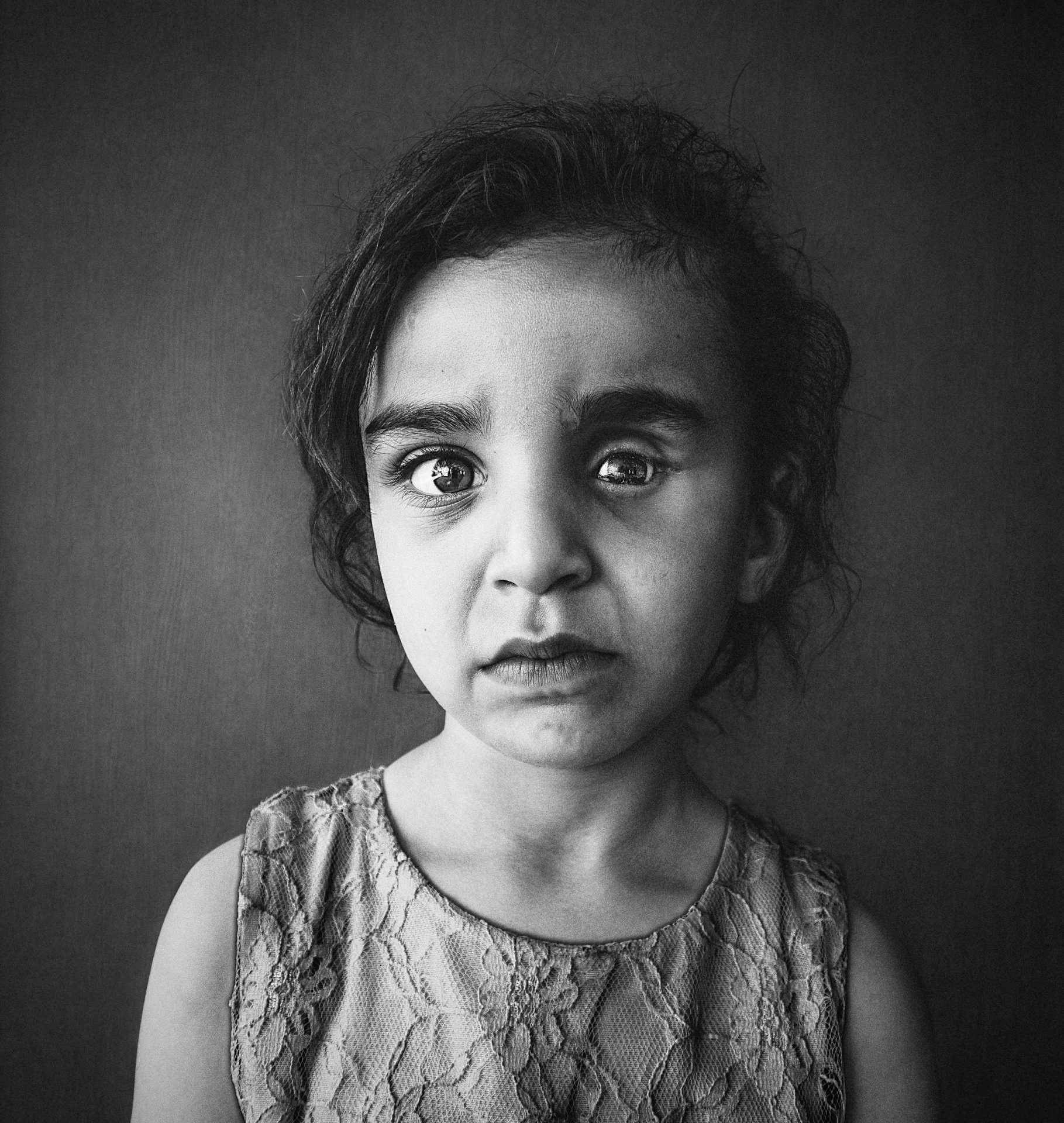 Neben den Selbstporträts sind auch Porträtaufnahmen einer alten Frau und von 2015 auf Chios gestrandeten Flüchtlingskindern in die Ausstellung integriert. Sie betonen einmal mehr Lene Marie Fossens existentielle Fragen des Seins und menschlichen Leids.
