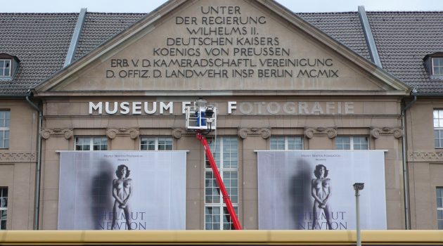 Foto: Anbringen des Schriftzuges ander Fassade des Museums für Fotografie, 2009, © Kunstbibliothek – Staatliche Museen zu Berlin