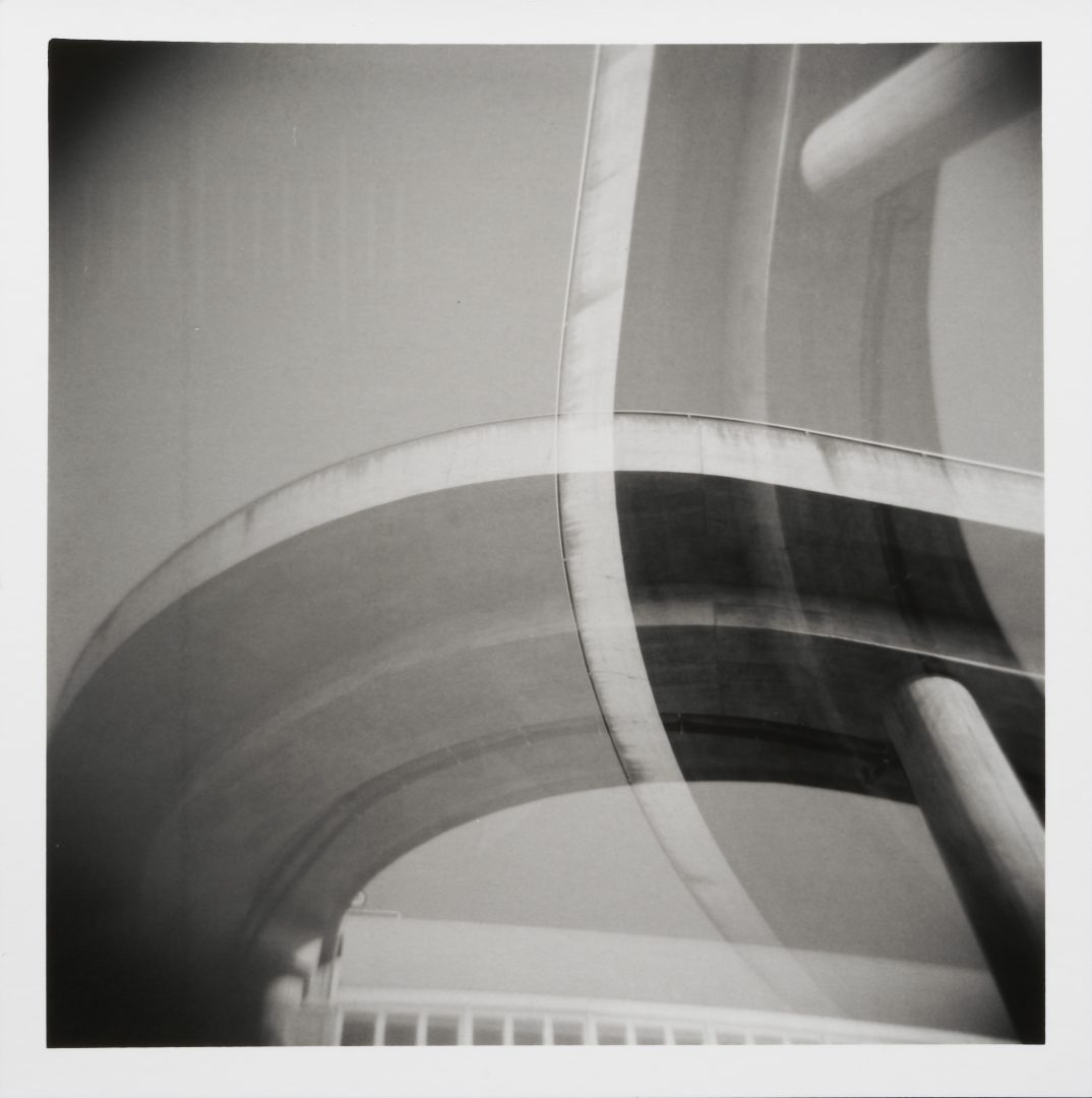 Außergewöhnliche räumliche Strukturen und Überlagerungen erzeugen in den Serien Parkhaus und Gropius von Frauke Dannert (*1979) eine besondere Bildkomposition. Durch die Technik der Mehrfachbelichtung entwickelt die Künstlerin eine kaleidoskopische Formensprache. Die übereinander gelagerten Architekturausschnitte verwandeln sich in schwebende Strukturen, die sich nicht mehr auf die real existierende Architektur zurückführen lassen. Nur die Titel geben Anhaltspunkte zum Gesehenen.