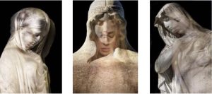 In einer sakral anmutenden Installation werden sechs Arbeiten gezeigt, in denen Skulpturenfotografie und Körperbild eine visuelle wie spirituelle Verschmelzung eingehen. Der Ansatz versteht Fotografie als Schwellenraum zwischen Reflektion und Meditation und öffnet ein Feld, in dem Schönheit und Verfall, Gegenwart und Vergangenheit ineinander übergehen.