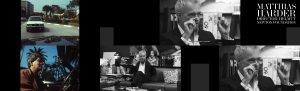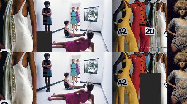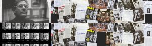 Die Collagen zeigen Fotografien von Helmut Newton sowie Presseartikeln über sein Werk, gezeigt im Film Intermezzo. Revisiting Helmut Newton.