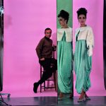 - F.C. Gundlach, Uli Richter Abendkleid im Directoire-Stil vor Backdrop, Berlin 1958 © F.C. Gundlach, Courtesy Stiftung F.C. Gundlach