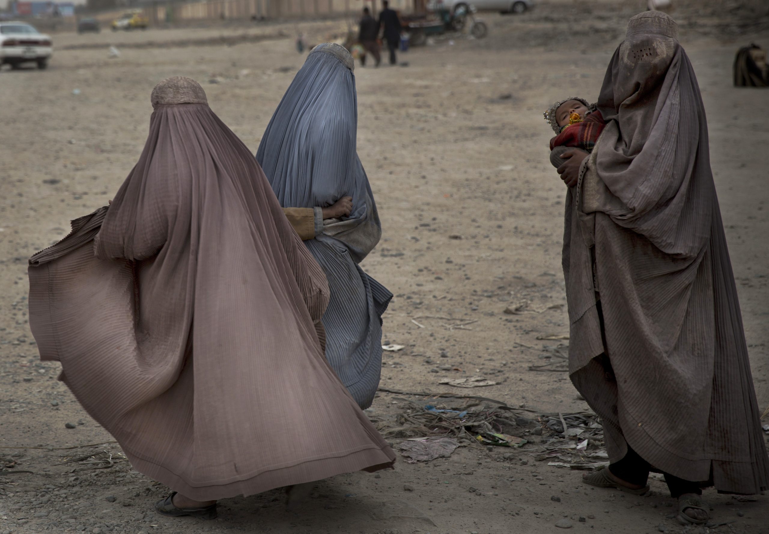 Afghan women beg in the street for money in the center of Kandahar…