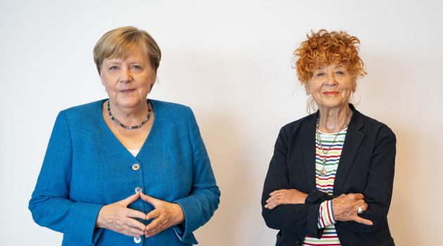 Foto oben: Bundeskanzlerin Angela Merkel undFotografin Herlinde Koelbl, 2021Foto: Bundesregierung / Steffen Kugler