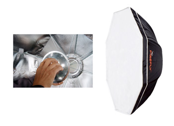 Dank ihres geringen Gewichts und der schirmartigen Konstruktion, sind die mit 50cm und 65cm Durchmesser erhältlichen Firefly II leicht zu transportieren und schnell aufzubauen. Die integrierte verstellbare Blitzhalterung samt Neiger ermöglicht eine sichere Befestigung und Ausrichtung der Einheit auf einem üblichen Lampenstativ, kann aber auch als Handgriff verwendet werden. Im Lieferumfang befindet sich neben einer stabilen Transporttasche ein Frontdiffusor. In Kombination mit dem aufschraubbaren Deflektor nähert sich die Lichtcharakteristik der Softboxen der eines Beauty Dish-Reflektors an.