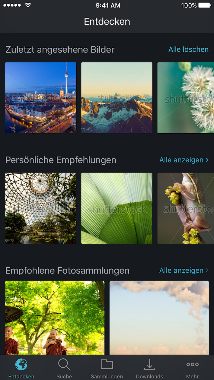 PF_Shutterstock iOS App_Entdecken