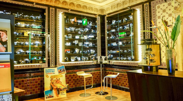 Statt Würste hängen in der ehemaligen Metzgerei aus dem Jahr 1880 nun Vitrinen mit klassischen Kameras. Seit Mitte Oktober werden im floralen Fliesenambiente analoge Sucher- und Spiegelreflexkameras angeboten, auch Schmalfilmkameras sind bei click & surr zu haben. Kodak startet in Kürze mit der Fertigung einer neuen Super-8-Kamera und wird auch den Ektachrome-Farbumkehrfilm wieder einführen. Zur Eröffnung war bei click & surr bereits der Prototyp der neuen Super-8-Kamera zu sehen.