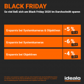 Der diesjährige Black Friday rückt näher und mit ihm die Aussicht auf Rabatte. Das gilt auch für Kameras und Objektive, wie ein Blick auf die idealo-Preisstudie 2020 zeigt. Neben der durchschnittlichen Ersparnis von rund fünf Prozent, konnten sich Fotografie-Liebhaber über Rabatte von bis zu 30 Prozent freuen. Ein Rück- und Ausblick aus idealo-Sicht.
