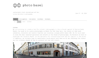 Zu sehen sind klassische und zeitgenössische Positionen der Fotografie. Auf fest definierten 12 Quadratmetern, zeigen die besten internationalen Galerien ihre vielversprechendsten jungen Künstler unter 40 Jahren. Zudem werden Sonderausstellungen und ein themenbezogenes Begleitprogramm zu Fragen des Fotokunstmarkts geboten. Zusammen mit der Messe werden gemeinnützige Engagements umgesetzt. Ort der Vorstellung der Photo Basel ist der Ackermannshof in der Basler Altstadt, unweit des Rheins mit einigen hundert Quadratmetern nutzbarer Ausstellungsfläche. Der Eintrittspreis für Erwachsene liegt bei 15 Schweizer Franken. Schüler, Studenten, Lehrlinge bis 25 Jahre haben freien Eintritt.