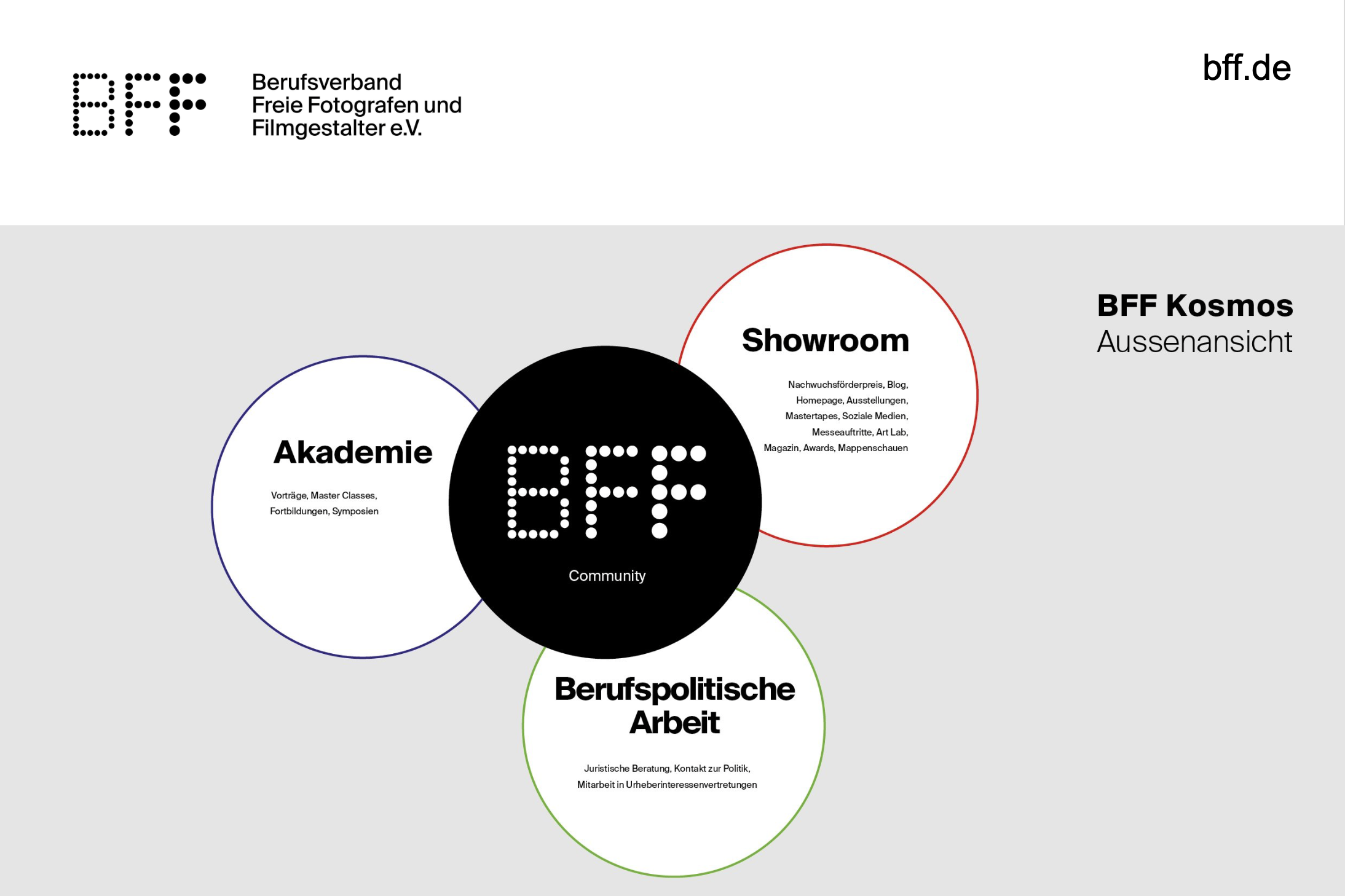 Ein Symposium der BFF Akademie zu aktuellen Themen und die turnusgemäße Mitgliederversammlung mit Vorstandswahl machen das Programm zu einem BFF-Mega-Event zum 55-jährigen Bestehen des Berufsverbands Freie Fotografen und Filmgestalter e.V..
