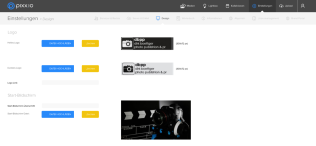 Ein Online-Tool beziehungsweise eine dem Kunden bereitgestellte Dienstleistung muss natürlich neben den grundlegenden Basisfunktionen auch Optionen bieten, um beispielsweise die Darstellung der Seiten zu individualisieren. Dazu zählen nicht nur ein mit Bildern, Logo und Text zu gestaltender Startbildschirm und die Option, Wasserzeichen an beliebigen Stellen auf den Bilddaten zu platzieren, sondern auch die Möglichkeit, über das Brand-Portal eine individuelle Einstiegsseite für Kunden auf Basis einer Filterung zu generieren.