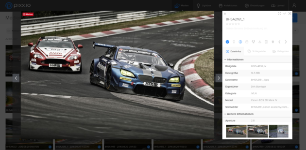 Von einem Verwaltungsprogramm darf man natürlich erwarten, dass die hochgeladenen Bilddaten in vielerlei Form sortiert und dargestellt werden können. Und so stellt pixx.io team die Daten nicht nur anhand einer Kategorieauswahl dar, sondern filtert zusätzlich nach Dateityp, Orientierung/Bildformat, Bildgröße, Erstelldatum, und – wenn Geodaten mit dem Bild gespeichert wurden – Ort und Land. Selbstverständlich wird die „Sternchenbewertung“ aus der Kamera oder dem Bildbearbeitungsprogramm ebenfalls mit übernommen. Alle diese Suchkriterien können einzeln ausgewählt oder auch miteinander kombiniert werden. Die daraus resultierenden Filterungskriterien lassen sich für eine spätere Verwendung abspeichern. Selbstverständlich unterstützt pixx.io auch eine Schlagwortsuche beziehungsweise die Kombination aus Filter und Schlagwortsuche.