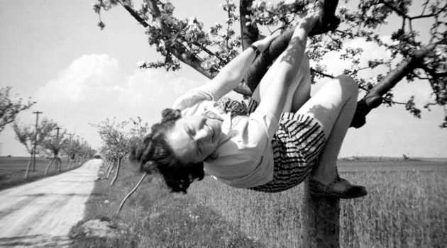 ‚Ich verstehe nicht, wie man an einem Baum vorübergehen kann, ohne glücklich zu sein‘, heißt es in Fjodor Dostojewskis Roman Der Idiot. Und vielleicht erklärt dieser Ausspruch auch ein wenig das zwischen den 1920er- und 1950er-Jahren beliebte, aber bislang in keinem Buch thematisierte Motiv von Frauen auf Bäumen. Der Herausgeber, Jochen Raiß (47), der den Beruf des Fotoredakteurs mit so viel Leidenschaft ausübt, dass er sogar in seiner Freizeit ständig auf der Jagd nach guten Bildern ist, fand vor 25 Jahren zufällig auf einem Flohmarkt in Frankfurt am Main ein Foto einer Frau auf einem Baum, das ihm auf Anhieb gute Laune machte. Er kaufte es, benutzte es eine Weile als Lesezeichen und freute sich jedes Mal, wenn er es sah: „Die Frau darauf sah einfach so glücklich aus.“ Dann entdeckte er auf einem seiner Beutezüge durch Trödelläden und Flohmärkte irgendwann ein weiteres Foto einer Frau auf einem Baum. Und dann noch eins. Seither sucht er, wo immer er Kartons voller alter, aussortierter Fotos sieht, gezielt nach diesem Motiv. Rund 2.300 historische Amateurfotos mit ungewöhnlichen Bildinhalten umfasst der Gesamtfundus von Jochen Raiß. Mit seinen Sammlungen hat der Künstler einen Weg gefunden, das Schöne und Flüchtige festzuhalten und längst vergangenen Momenten ein zweites Leben einzuhauchen.