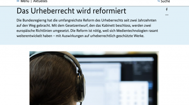 Das Bundeskabinett hat am 3. Februar den umstrittenen Entwurf des Gesetzes zur Anpassung des Urheberrechts an die Erfordernisse des digitalen Binnenmarkts beschlossen.