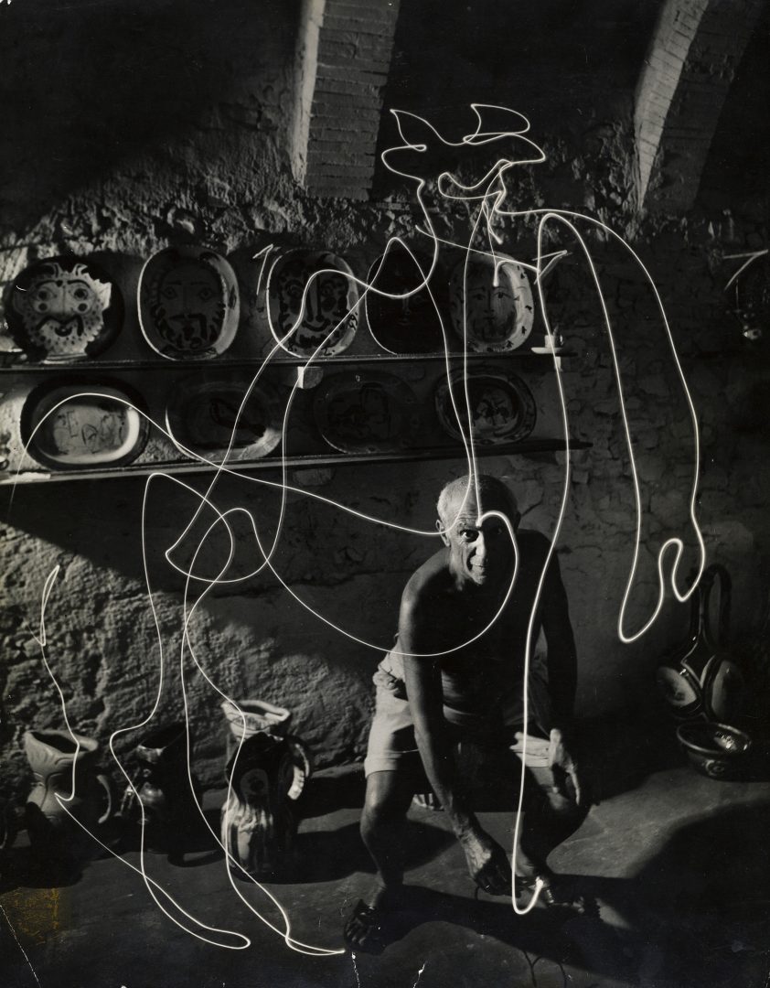 - GJON MILI (1904–1984) Pablo Picasso zeichnet mit Licht und vier weitere Lichtzeichnungen, 1949 © OstLicht Foto-Auktion