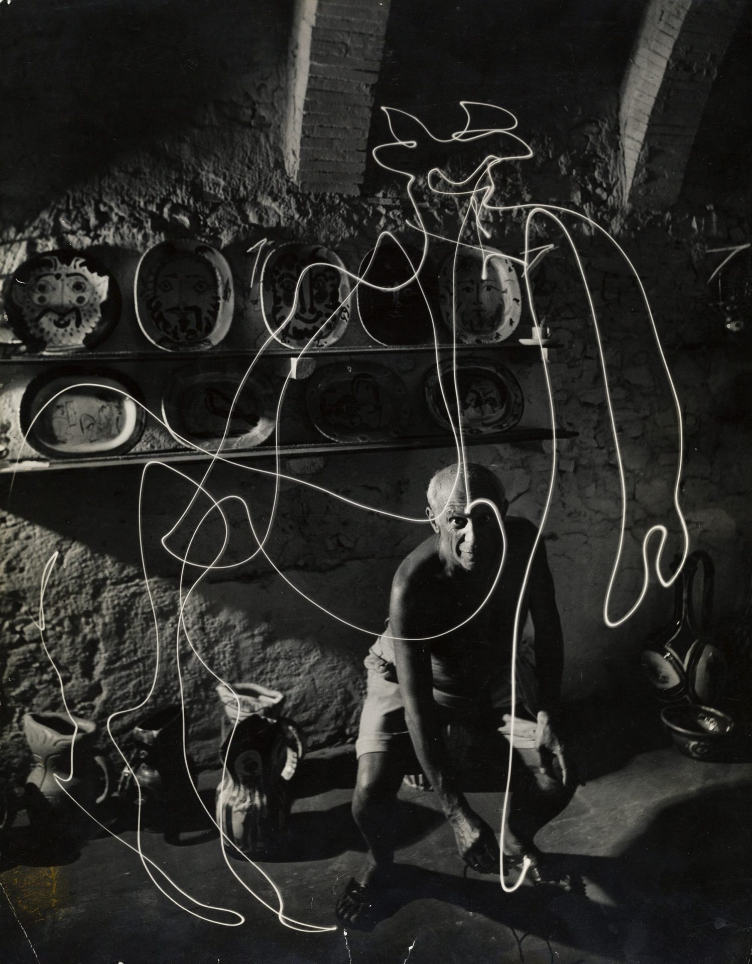 - GJON MILI, Lichtzeichnung von Pablo Picasso, 1949