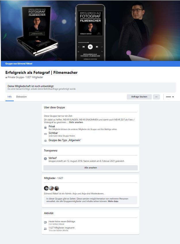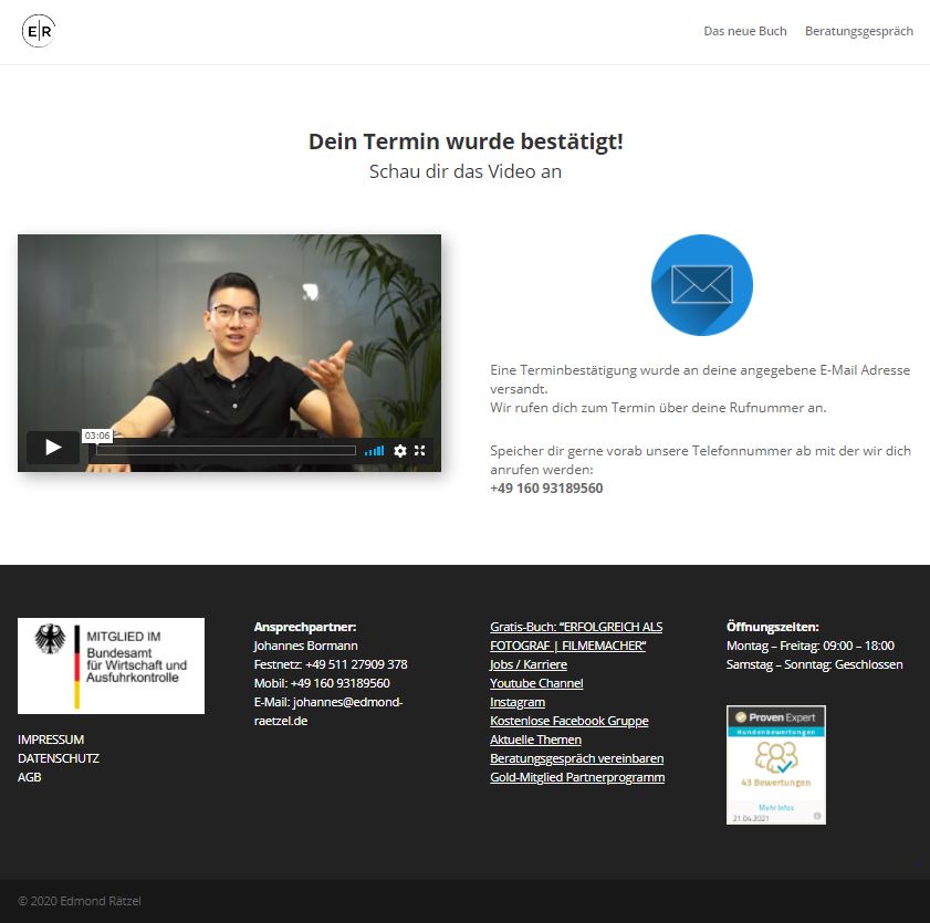 Edmond Rätzels Heilsversprechen „Wir helfen Fotografen und Videografen dabei, mehr Anfragen zu gewinnen“ hat nach seinen Angaben bislang rund 250 Fotografen dazu gebracht, sich seit 2018 von ihm beraten zu lassen.