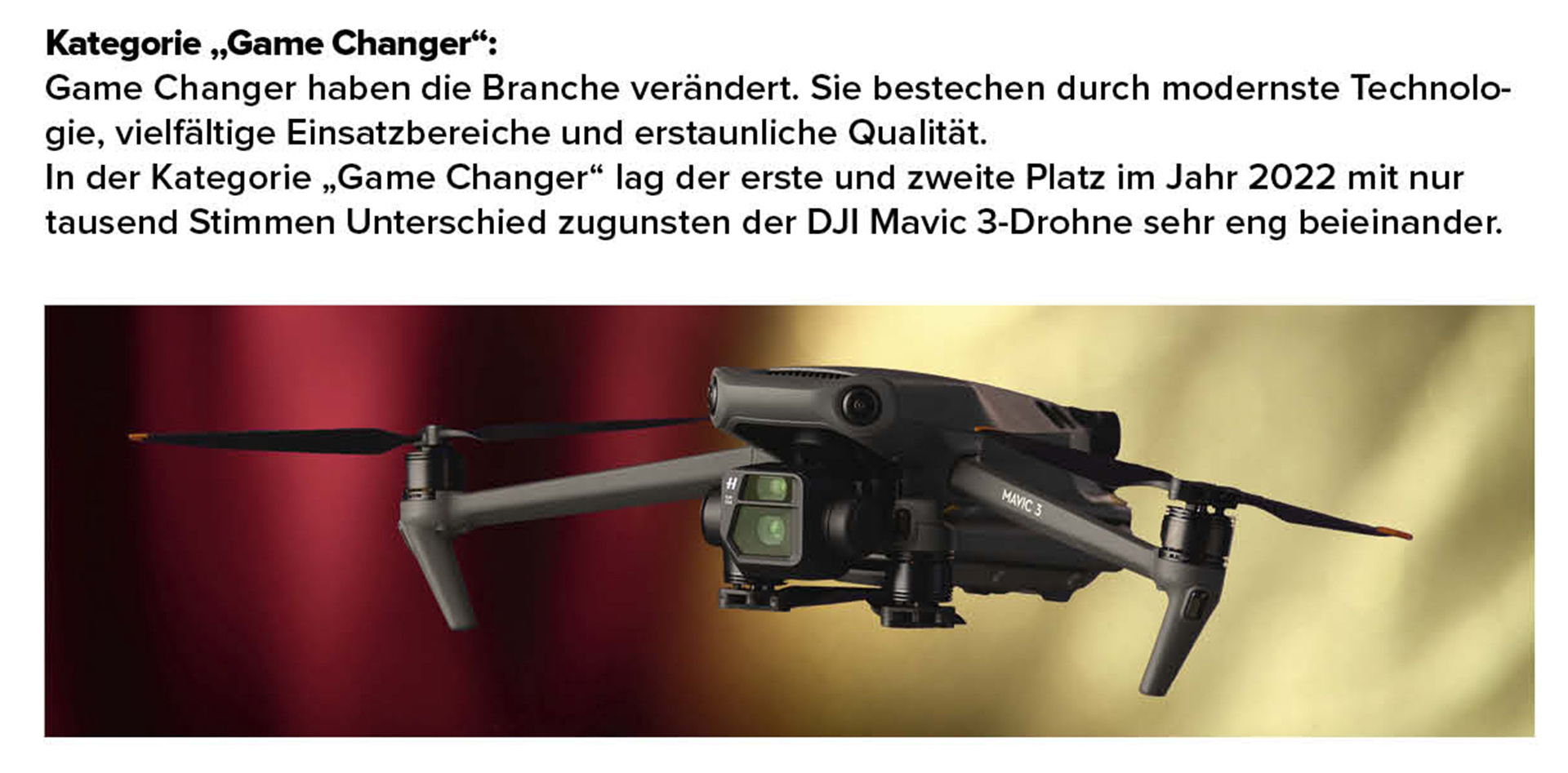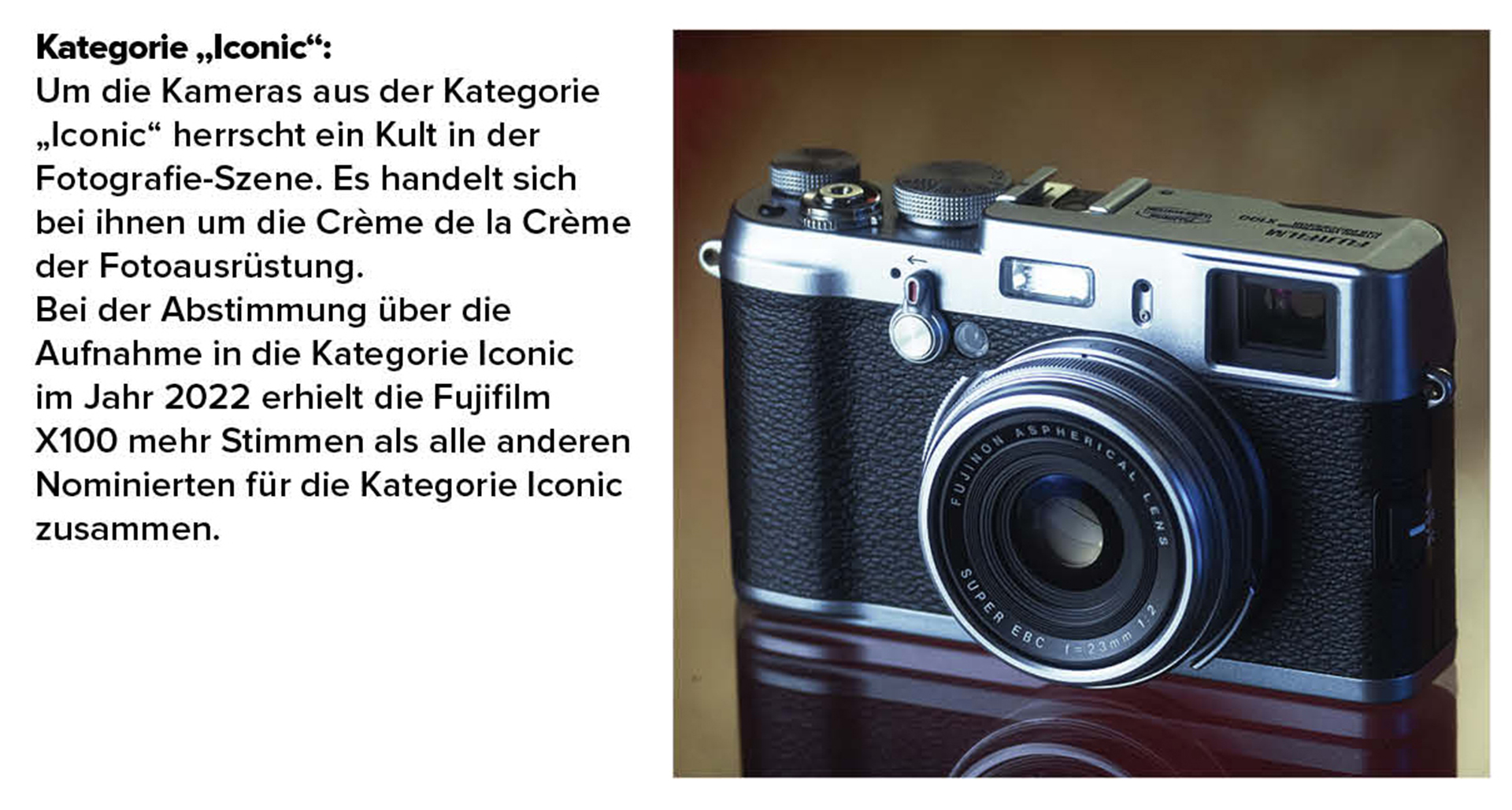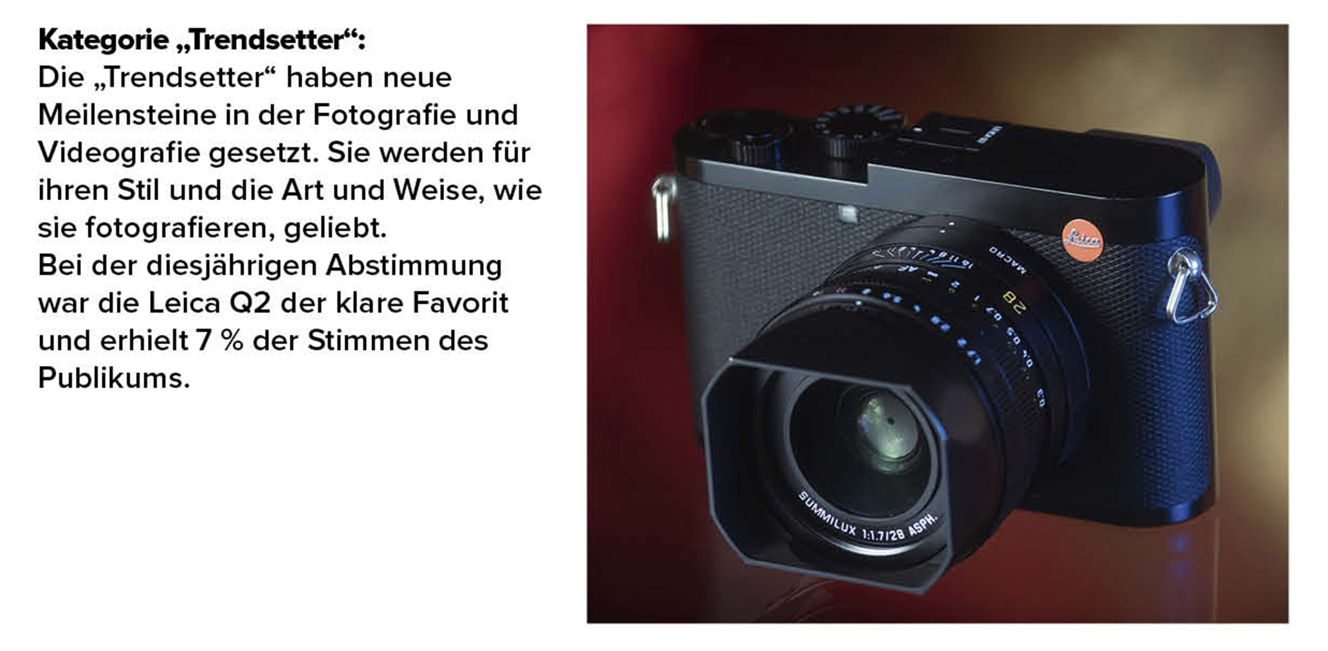 Die Wahl erfolgte in fünf unterschiedlichen Kategorien: „Classic“, „Trendsetter“, „Iconic“, „Game Changer“ und „Road Tested“. Eine Experten-Jury – bestehend aus Fotografen und Influencern aus den USA, Großbritannien, Frankreich und Deutschland und dem MPB-Gründer und CEO Matt Barker – hatte im Vorhinein drei Produkte pro Kategorie nominiert.