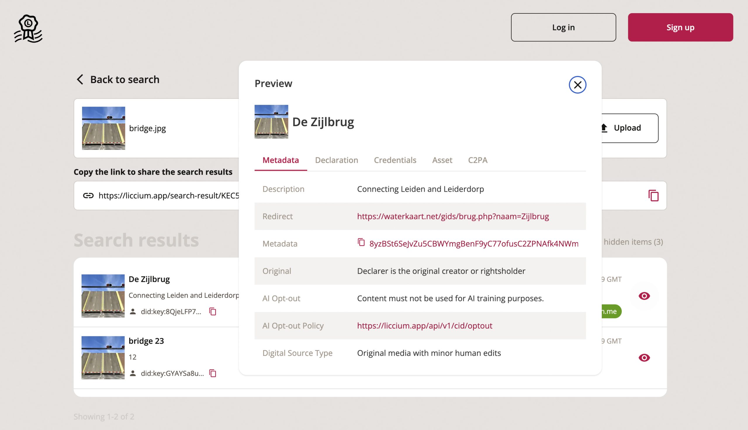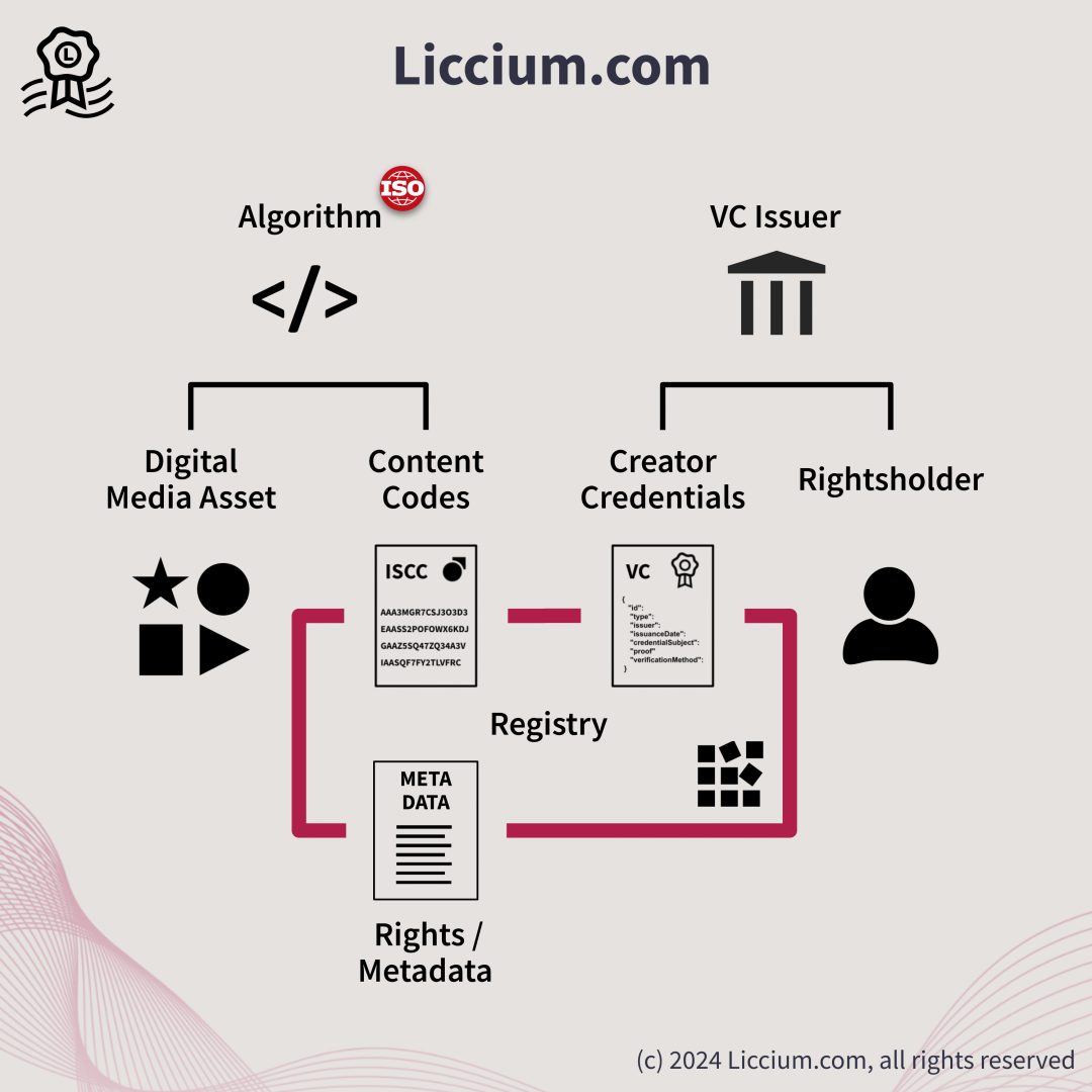 Mit Hilfe der Liccium App können Nutzer einzigartige ISCC-Codes aus den digitalen Mediendateien ihrer Originalwerke erzeugen. In öffentlichen Erklärungen werden dann Urheber- und Lizenzinformationen sowie andere Metadaten mit dem Code verbunden. Diese Erklärungen werden in öffentlich zugänglichen Verzeichnissen gespeichert, so dass Dritte – Nutzer oder Plattformen – die Authentizität und Integrität digitaler Medieninhalte überprüfen, sowie Rechte, Lizenzen und andere Produkt-Metadaten einsehen können.