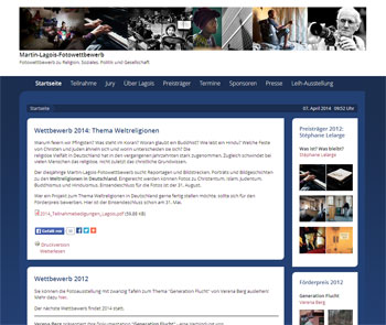 Das Thema des diesjährigen Wettbewerbs lautet „Weltreligionen in Deutschland“. Gesucht werden Fotoreportagen und Bilder, die sich mit dem religiösen Leben und Glauben in Christentum, Judentum, Islam, Buddhismus und Hinduismus in Deutschland beschäftigen. Zum Fotowettbewerb gehört erneut ein Förderpreis, mit dem Foto-Projekte vorzugsweise zu sozial- oder gesellschaftspolitischen Themen unterstützt werden sollen. Der Fotopreis ist mit insgesamt 3.000 Euro dotiert und richtet sich an Fotografinnen und Fotografen mit ständigem Wohnsitz in Deutschland. Eingereicht werden können Reportagen oder Serien mit maximal zehn Fotos. Die Bilder müssen innerhalb der letzten drei Jahre entstanden sein. Einsendeschluss ist der 31. August 2014. Der Förderpreis ist mit 2.000 Euro dotiert und muss bis Ende September 2014 realisiert werden. Einsendeschluss für den Lagois-Förderpreis ist der 31. Mai 2014.