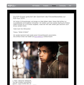 Um den Nachwuchs zu fördern, durften sich in diesem Jahr nur Auszubildende und Studenten am Wettbewerb beteiligen. Vergeben wurden insgesamt acht Preise. Den ersten Platz belegt Sebastian Wolligandt mit „Auf den Straßen Kathmandus“. Er erhält einen Canon Pixma PRO 10 Tintenstrahldrucker im Wert von 650 Euro. Auf Platz zwei landet Paul Schmidt. Er gewinnt einen Nikon Warengutschein im Wert von 500 Euro. Platz drei geht an Sebastian Wolligandt mit „Abendessen“. Er erhält ein Manfrotto: KLYP + Set (Hülle + Objektive) für iPhone im Wert von 90 Euro. Auf den Plätzen vier bis acht landen Kim Graf, Theresa Lindemann, Wilma Leskowitsch, Evelyn Hürrig und Wilma Leskowitsch.