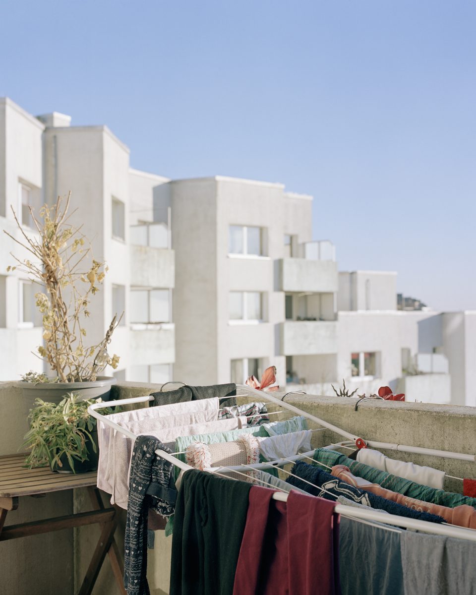 Die Serie „ebenda“ von Marina Cordes und Signe Heldt gibt Einblick in das Leben der Großwohnsiedlung Steilshoop in Hamburg. 1969 als Plattenbausiedlung für mehr als 20.000 Bewohner konzipiert, ist das Viertel bis heute geprägt vom Gegensatz zwischen der Bevölkerungsstruktur mit niedrigem Durchschnittseinkommen und überdurchschnittlich vielen Bewohnern mit Migrationshintergrund einerseits und den planerischen Idealen der Architekten andererseits, die von urbanem Wohnen umgeben von parkähnlichem Grün träumten. Die Serie verknüpft situative Porträts von Menschen verschiedener Kulturen und Altersgruppen in ihrem häuslichen Umfeld mit Außenansichten der Siedlung, die die Betonarchitektur ins Gesamtbild holen.